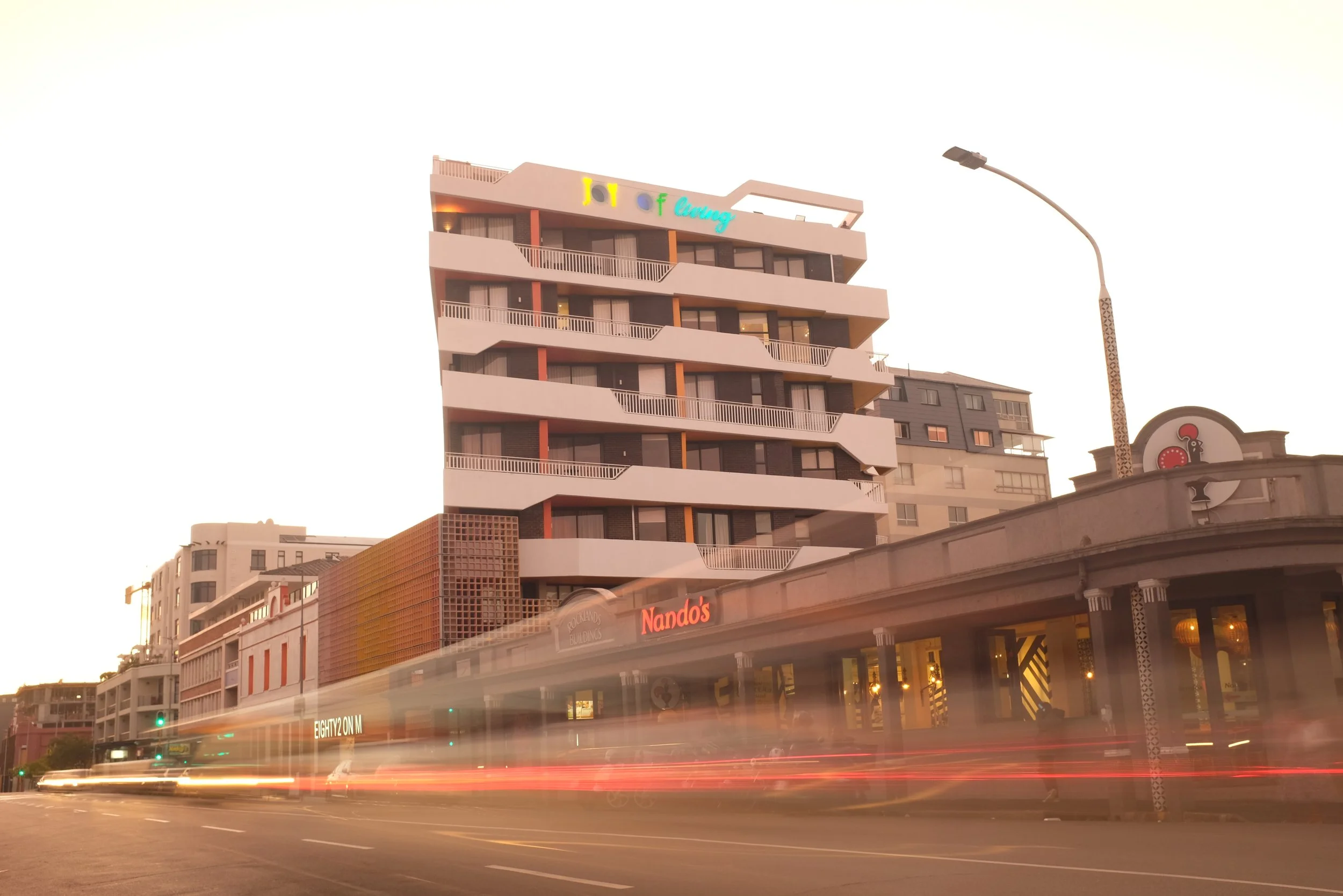 The mixed-use eight-story building is situated in Sea Point, a rapidly evolving neighborhood in Cape Town. The client's directive was to design a densely populated apartment complex to meet the demands of the burgeoning Airbnb market. The design encompasses 100 apartments ranging from compact units to expansive penthouses, with office and commercial spaces on the lower levels. Additionally, the building features amenities such as a street arcade, a gym, and a deck with a pool area.