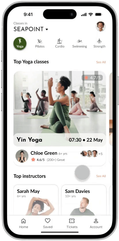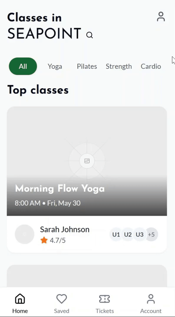 Our research indicated that users primarily discovered new classes and studios through social connections. This was a revealed rather than a stated preference. The design decision was made to prioritise social indicators, including instructor profiles and number of attendees, to increase engagement.