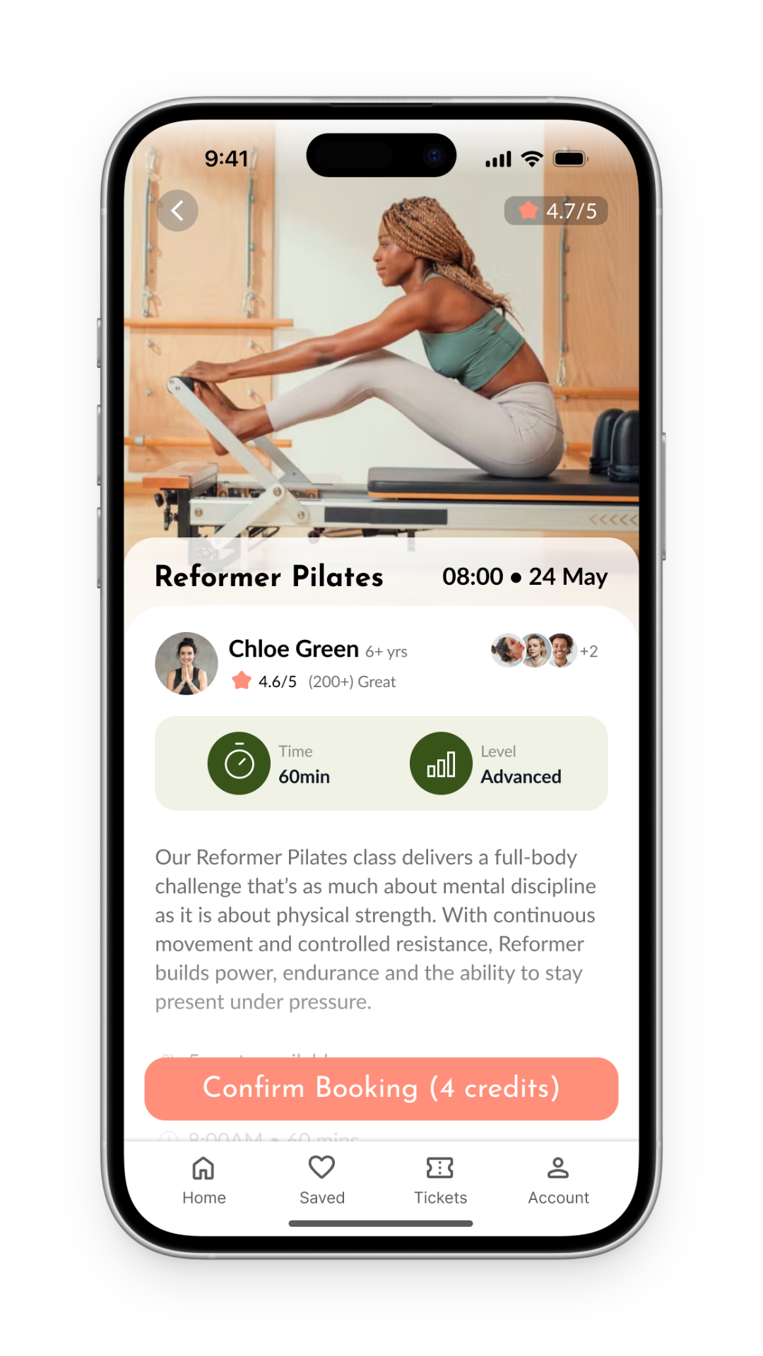 A “confirm booking” CTA button was added to the class preview page, including a cost preview.