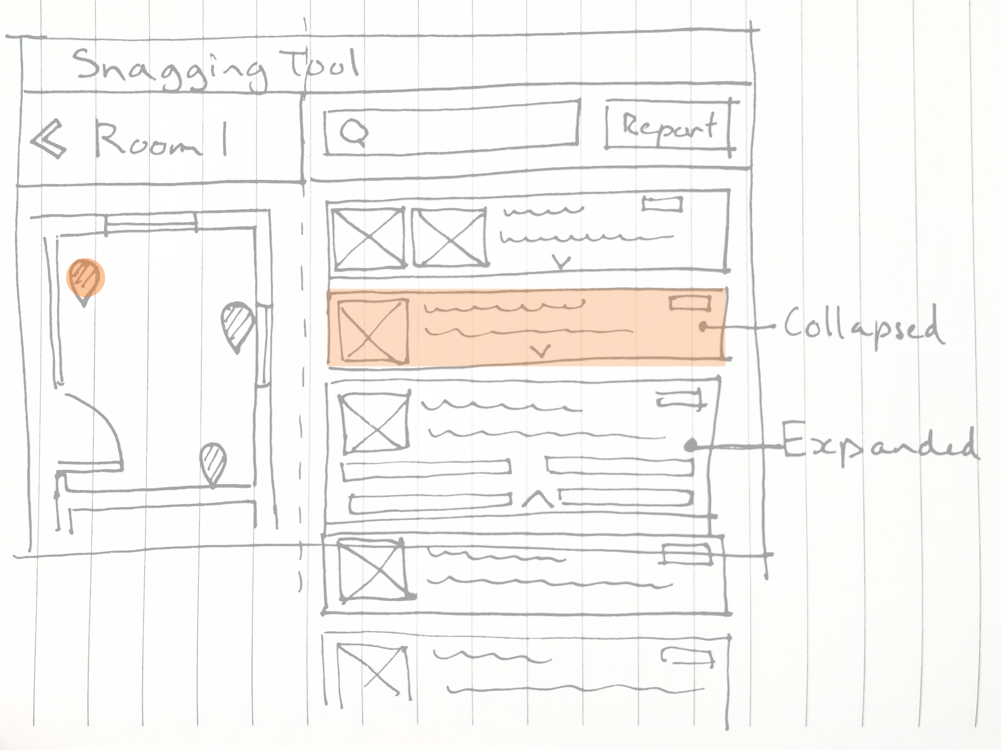 Note that some building sites are more conducive to on-site note-taking, and some professionals use devices better suited to writing and recording notes (tablets, etc). The intention is that the mobile product (not designed) will allow Simon to add as much detail as he’d like on-site, though the majority of editing and organising of notes the long list of notes will still take place on the web-based platform.