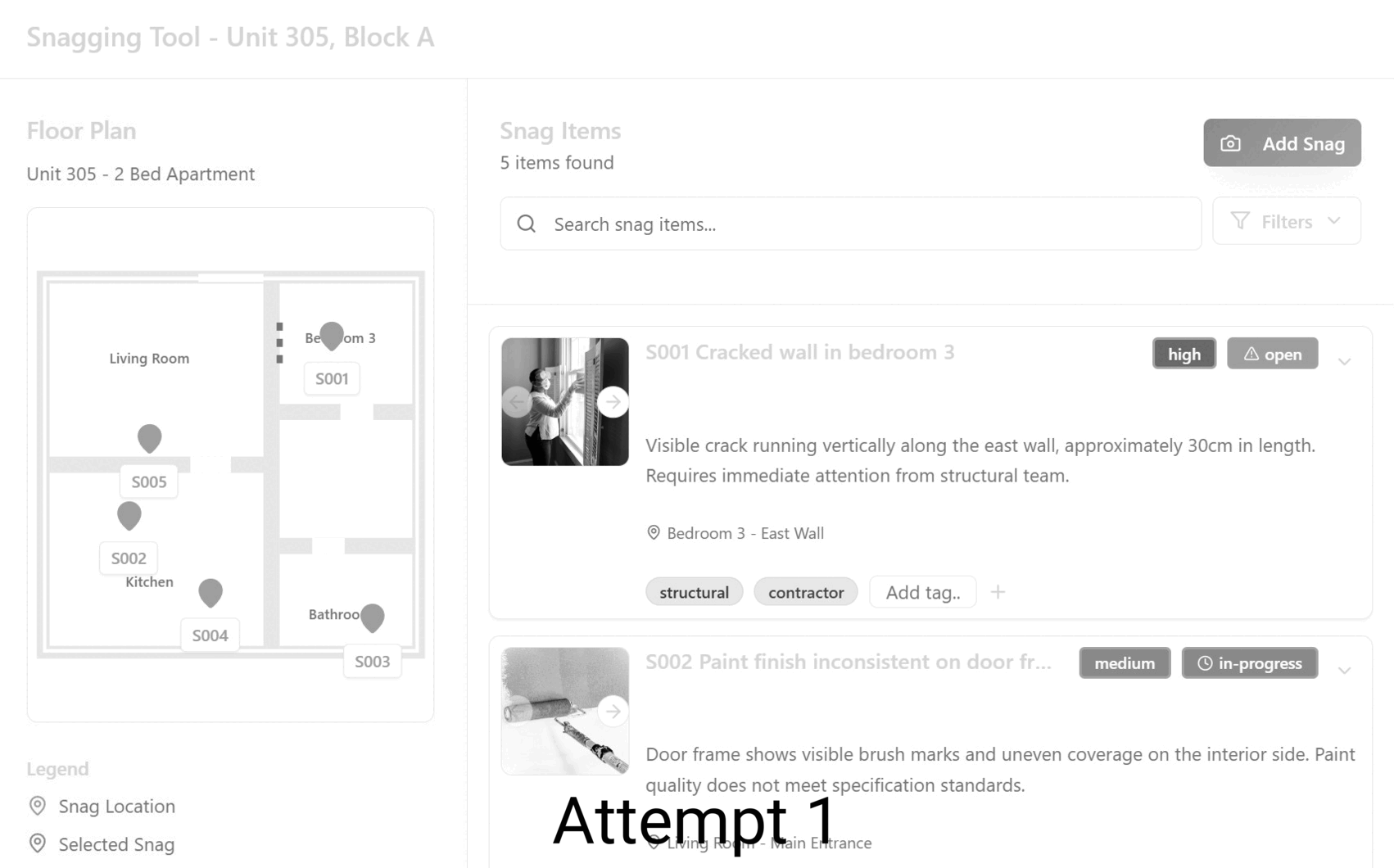 SnapSnag. An MVP solution to site snagging using AI prototyping.